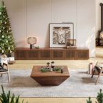 We bought the 94.5" the middle sized one. TV stand came in 2 pieces (2 separate wooden crated boxes). Took us a bit of time figuring out the best way of opening them but eventually did. After opening, we learned to appreciate how much time and effort went into packing and delivery. Delivery time was actually very fast. It said 1-3 weeks delivery, but it actually arrived right before the first week. We were very pleased not having to assemble them and instead we just need to connect them together. The color was a little darker than we thought but not an issue at all. It goes very well with our other furniture. The wood quality feels very strong and dependable. Before buying from Povison, like probably many others, we were skeptical about the company, but trusted the many other customer reviews. The reviews are spot on and I stand by them as well. If we need other furniture, we will be sure to check out Povison in the future as well. BTW for reference, the picture is the 94.5" length model in dark wood. The TV is LG C2 83" and Bose Soundbar 900 on top of the stand.