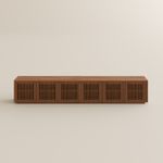 Gorgeous TV stand, mid century and sleek. Delivery and packaging was very thorough, fast and professional. I was a little intimidated by the crate but was able to disassemble it, lower it and remove the packaging myself at 5'4". I have a 75" Samsung TV and this is the 70" long console. I wish it had more holes for cords in the other sections in the back, this one only has two in the center section. I'm very pleased with the look of it.